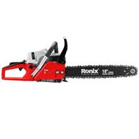 اره زنجیری بنزینی رونیکس مناسب درخت بر ی با تیغه 45 سانتی و موتور 2.4 اسب دو زمانه.
