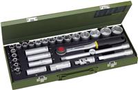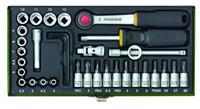 -) جعبه بکس 27 پارچه شامل بکس، دو عدد دسته جغجغه 1/2" و 1/4" ،آچار شمع ،بکس لغلغی، کمکهای کوتاه و بلند.