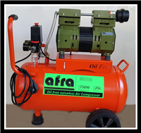 کمپرسورباد سایلنت افرا ۲۵ لیتری، بی صدا بدون نیاز به روغن، جنس بدنه مخزن از ورق ۲.۵ میلیمتر فولاد مبارکه اصفهان با بالاترین کیفیت جوش(توسط دستگاه جوش زیرپودری)، موتور تمام مسی و پیستون بلند ۷۵۰ واتی دارای طول عمر طولانی، پر کردن مخزن در کوتاهترین زمان ممکن.