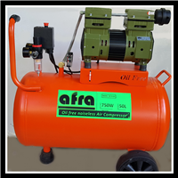 کمپرسورباد سایلنت افرا 50 لیتری، بی صدا بدون نیاز به روغن، جنس بدنه مخزن از ورق ۲.۵ میلیمتر فولاد مبارکه اصفهان با بالاترین کیفیت جوش(توسط دستگاه جوش زیرپودری)، موتور تمام مسی و پیستون بلند ۷۵۰ واتی دارای طول عمر طولانی، پر کردن مخزن در کوتاهترین زمان ممکن.
